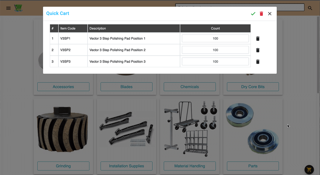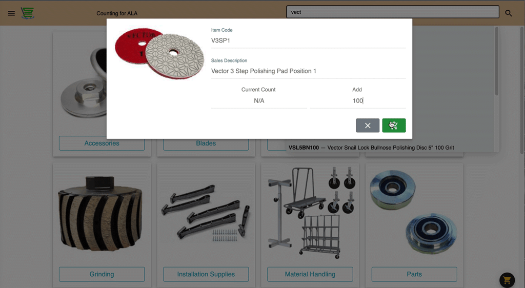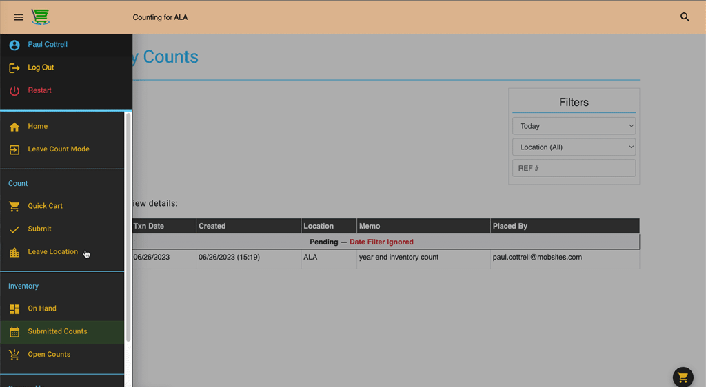 At any time you can view your Inventory Count Cart by clicking or tapping on any cart icon.