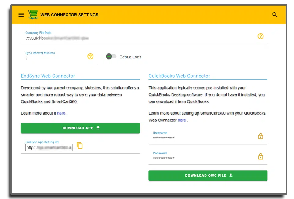 • SmartCart360 EndSync • Proprietary QB Sync Software • Real-Time Data Transfer