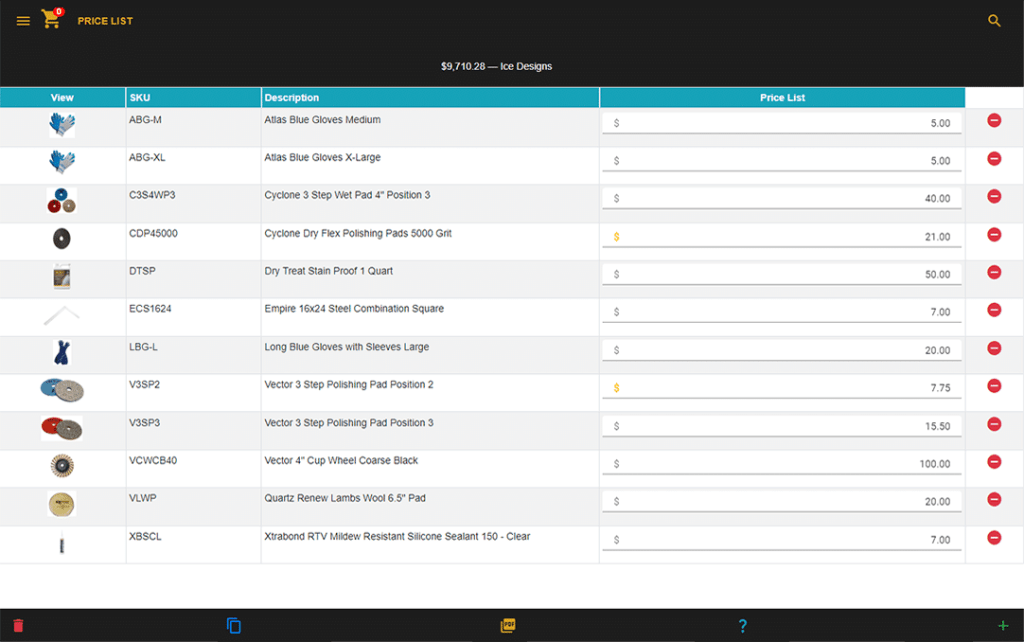 • Add New Customers • Customer Message Board • Create Price Lists • Track Open Estimates